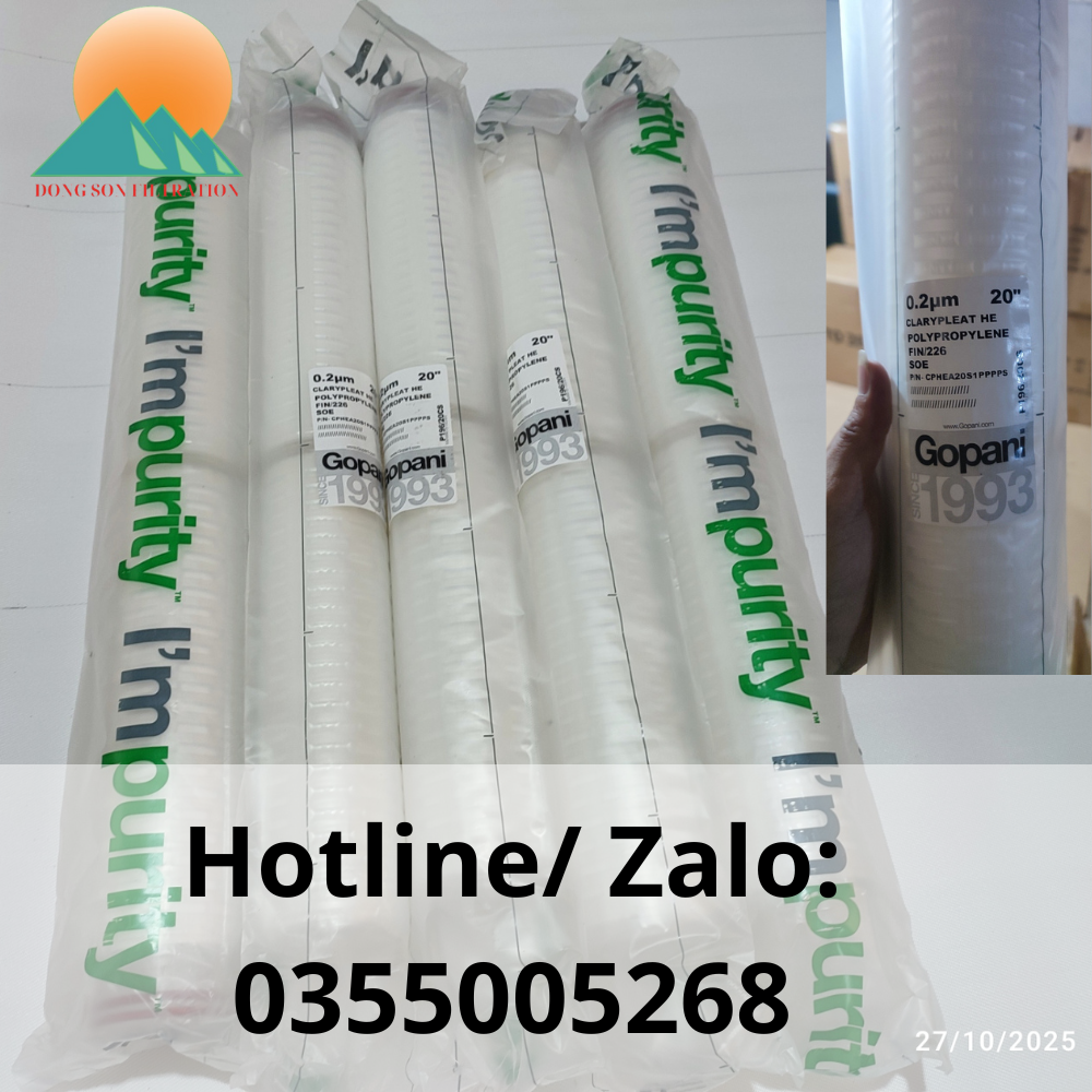 Dòng lõi lọc vi sinh của Gopani được thiết kế với màng lọc PP, PES hoặc PTFE, đáp ứng tiêu chuẩn vệ sinh cho ngành dược phẩm và thực phẩm.